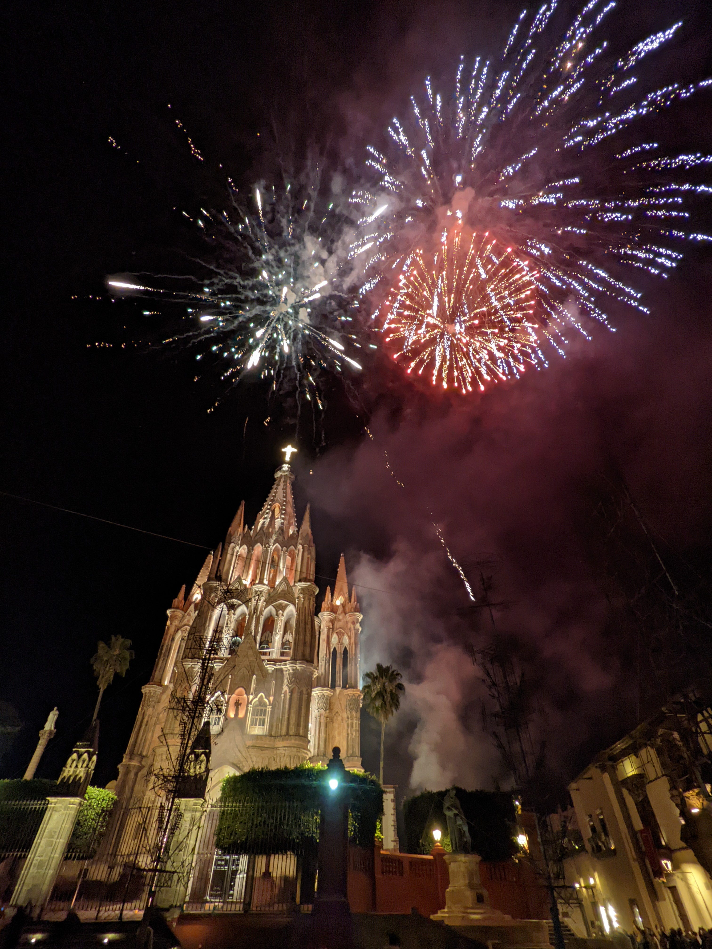 As an example, below is a recent photo of a fireworks display we witnessed in San Miguel de Allende, where we are currently. This show honored the town’s namesake hero, independence insurgent, Ignacio Allende. The fireworks were the grand finale; we also had a symphony, a color guard ceremony, pyrotechnic “castles”, and a parade. A bit much? Not for Mexicans.